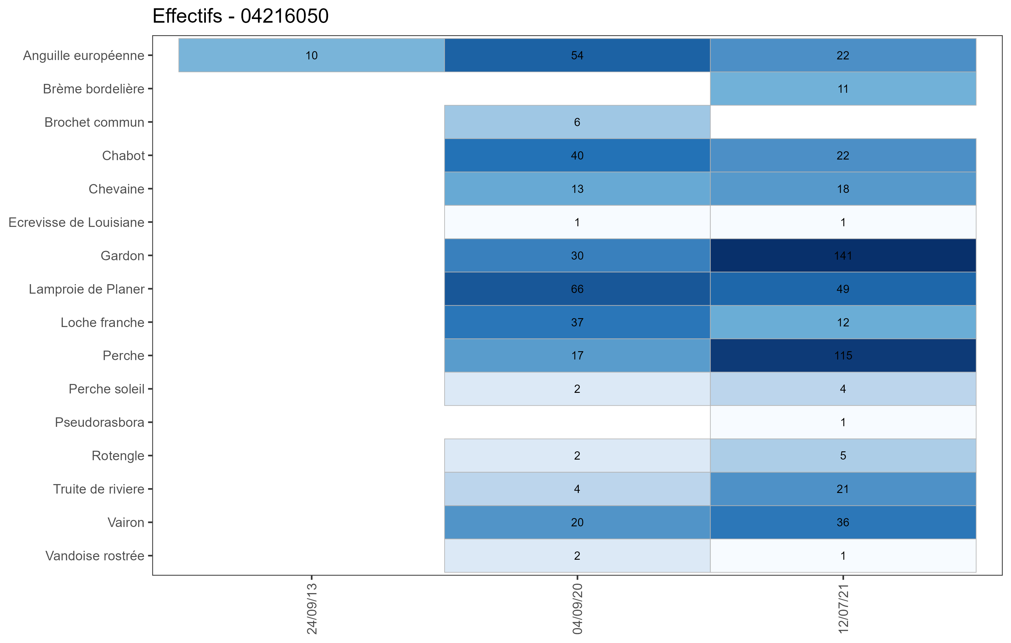 → affichage en log10 avec effectifs en clair.