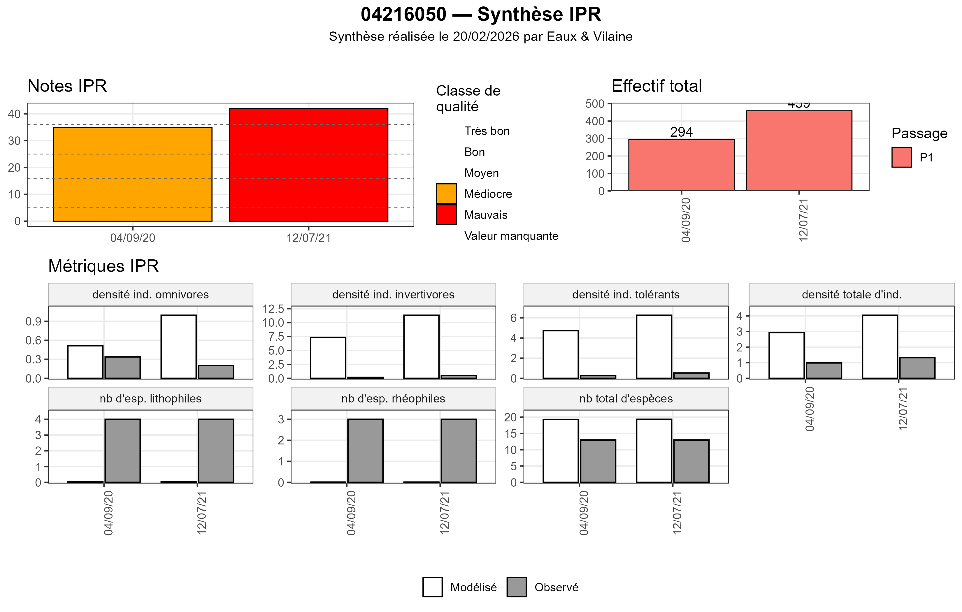 - métriques IPR observé vs modélisé.